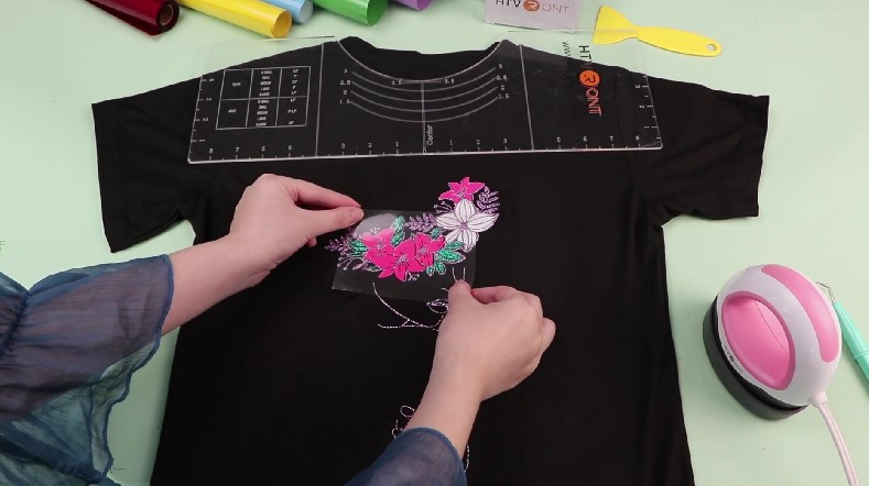2. 커팅 된 디자인을 티셔츠 위에 배치