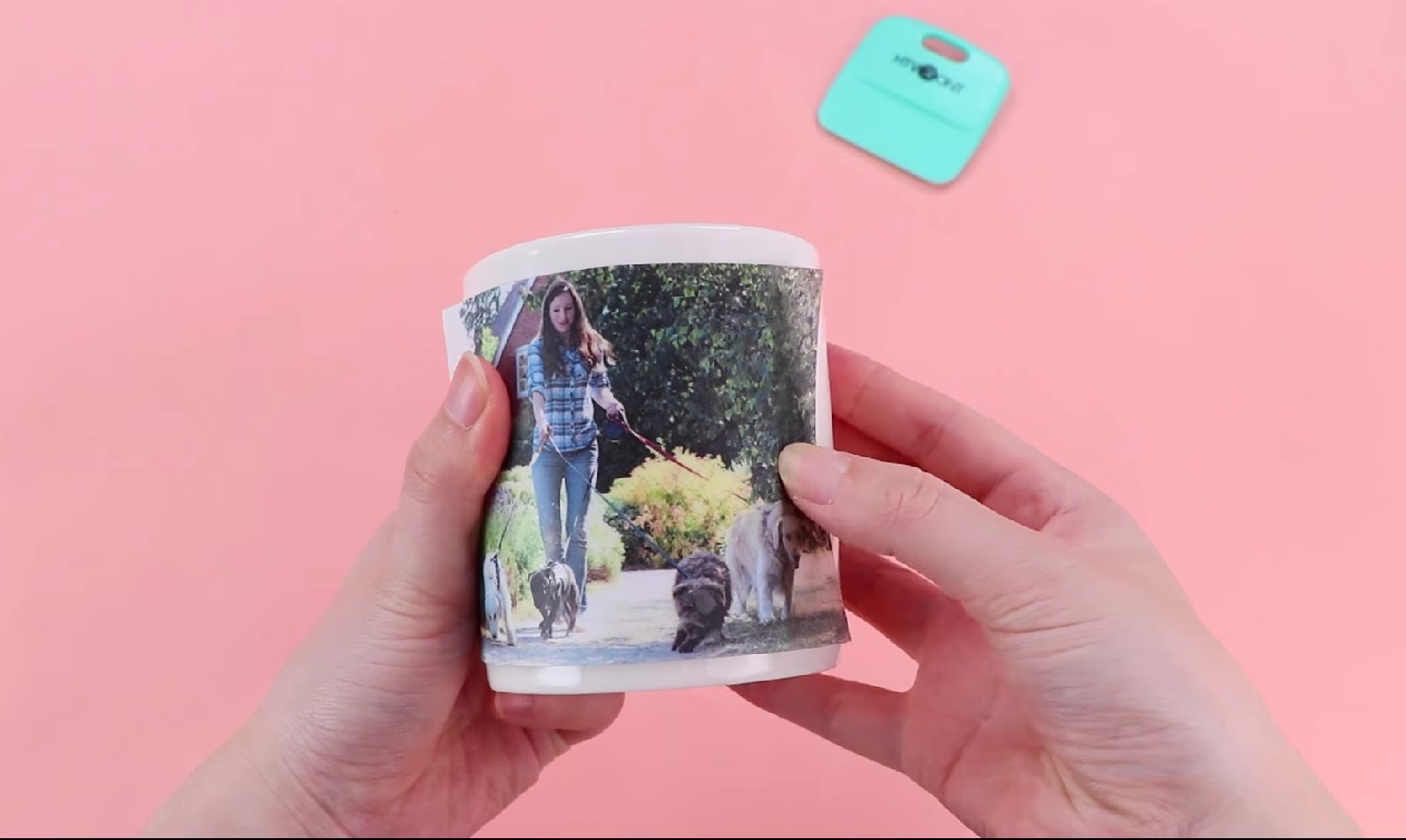 4. 시트지를 벗겨 머그컵 매끄러운 표면에 부착하면 완성!