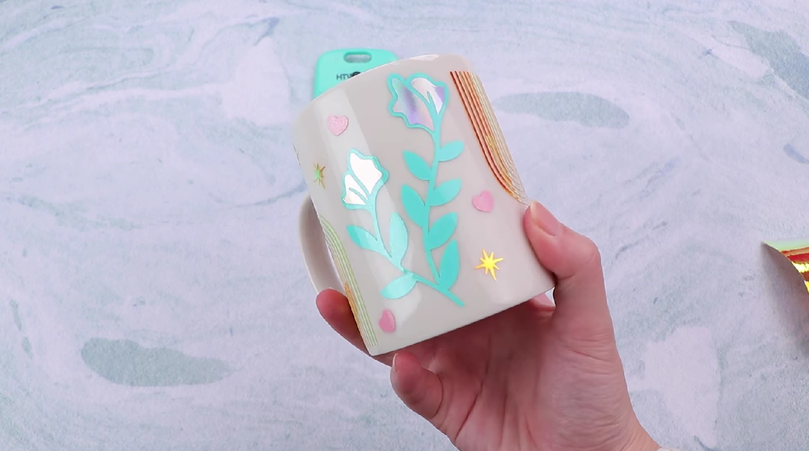 홀로그래픽 시트지로 머그컵 꾸미는 영상을 준비하였습니다.