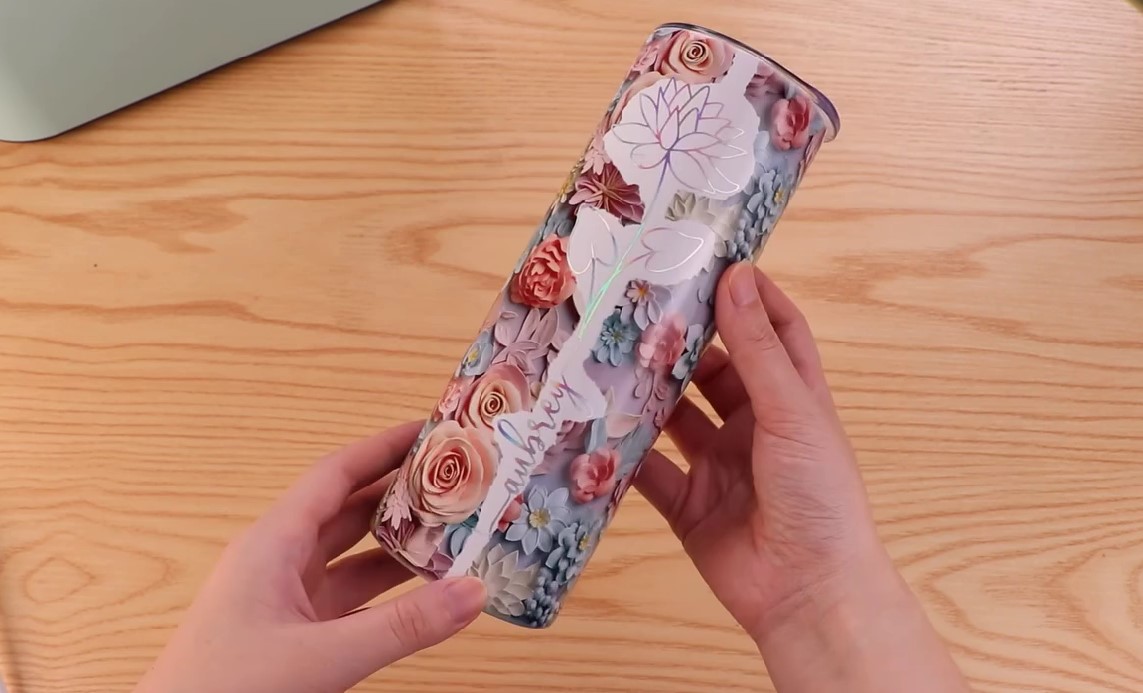 승화 텀블러의 열 전사 작업 과정에서 이음새 부분이 발생한다면 시트지로 텀블러의 이음새 부분을 꾸며보세요.