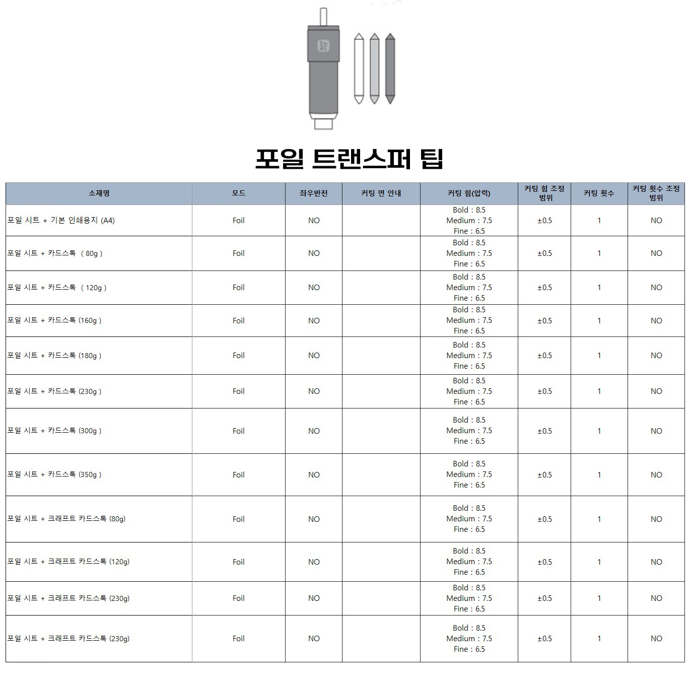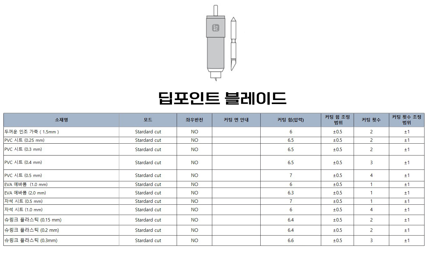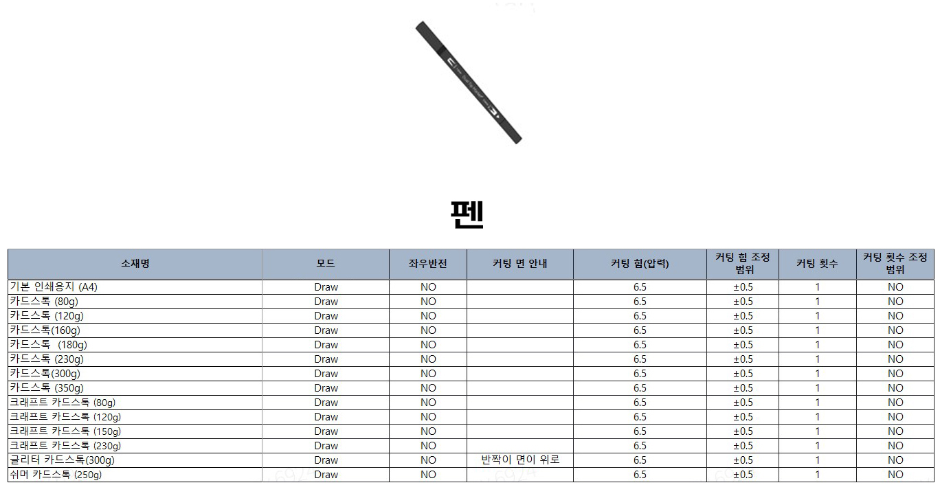 록릭 아이크래프트 커팅 설정값을 참고 하여 커팅 해보시기 바랍니다.