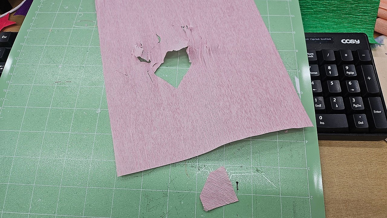 ‘주름지’ 특성 상 재료가 늘어나서 커팅이 완벽하게 되지는 않지만
