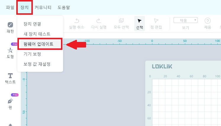 ※ 처음 록릭 아이크래프트 커팅기를 연결하실 때, 그리고 기기 펌웨어 업데이트가 있는 경우