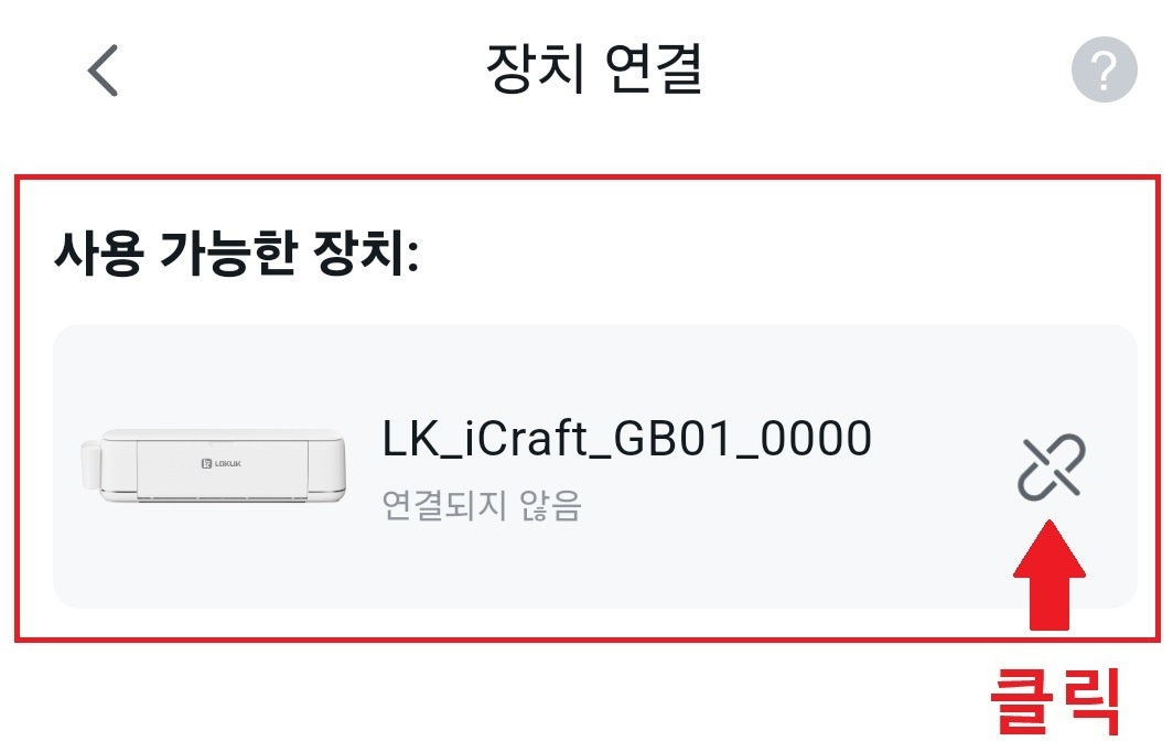 ② 스마트폰의 블루투스 기능을 켜고, "장치 연결" 화면에서 "록릭 아이크래프트(LOKLiK iCraft)" 를 선택합니다.