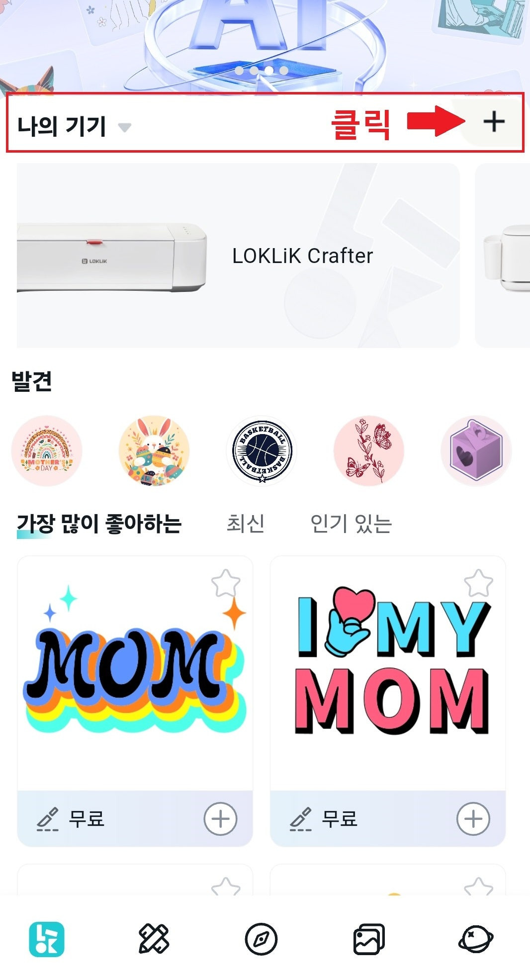 ① 록릭 아이디어 스튜디어 어플을 실행해 주세요. 화면에서 "나의 기기" 오른쪽 " + " 버튼을 클릭하세요.