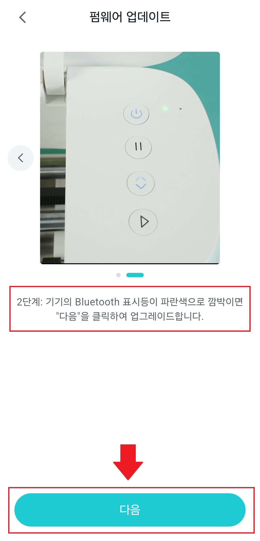 ⑦ 펌웨어 업데이트 화면 하단의 "다음"을 클릭하여, 장치 연결 하단의 아이크래프트를 클릭하여 기기를 연결 하세요.