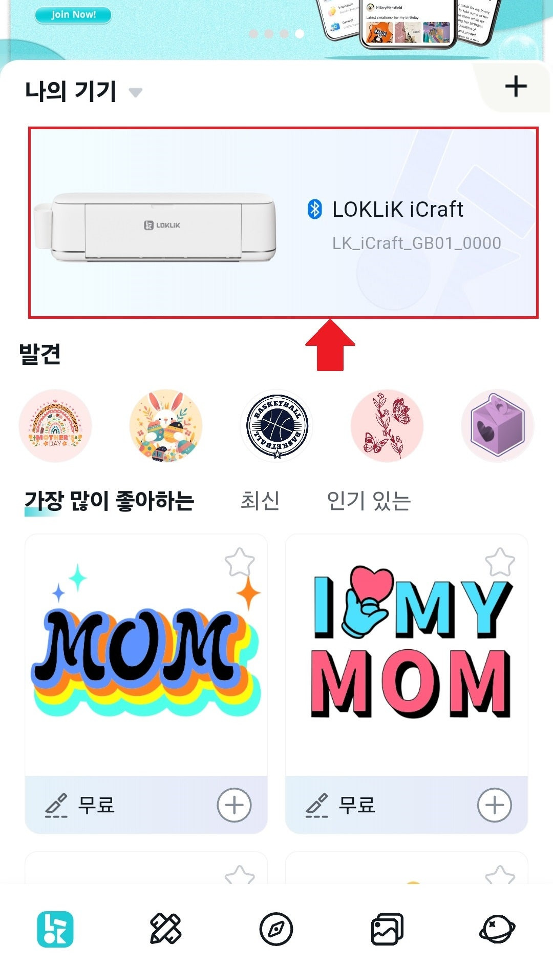 ④ "나의 기기" 하단의 록릭 아이크래프트 화면을 클릭해 주세요.