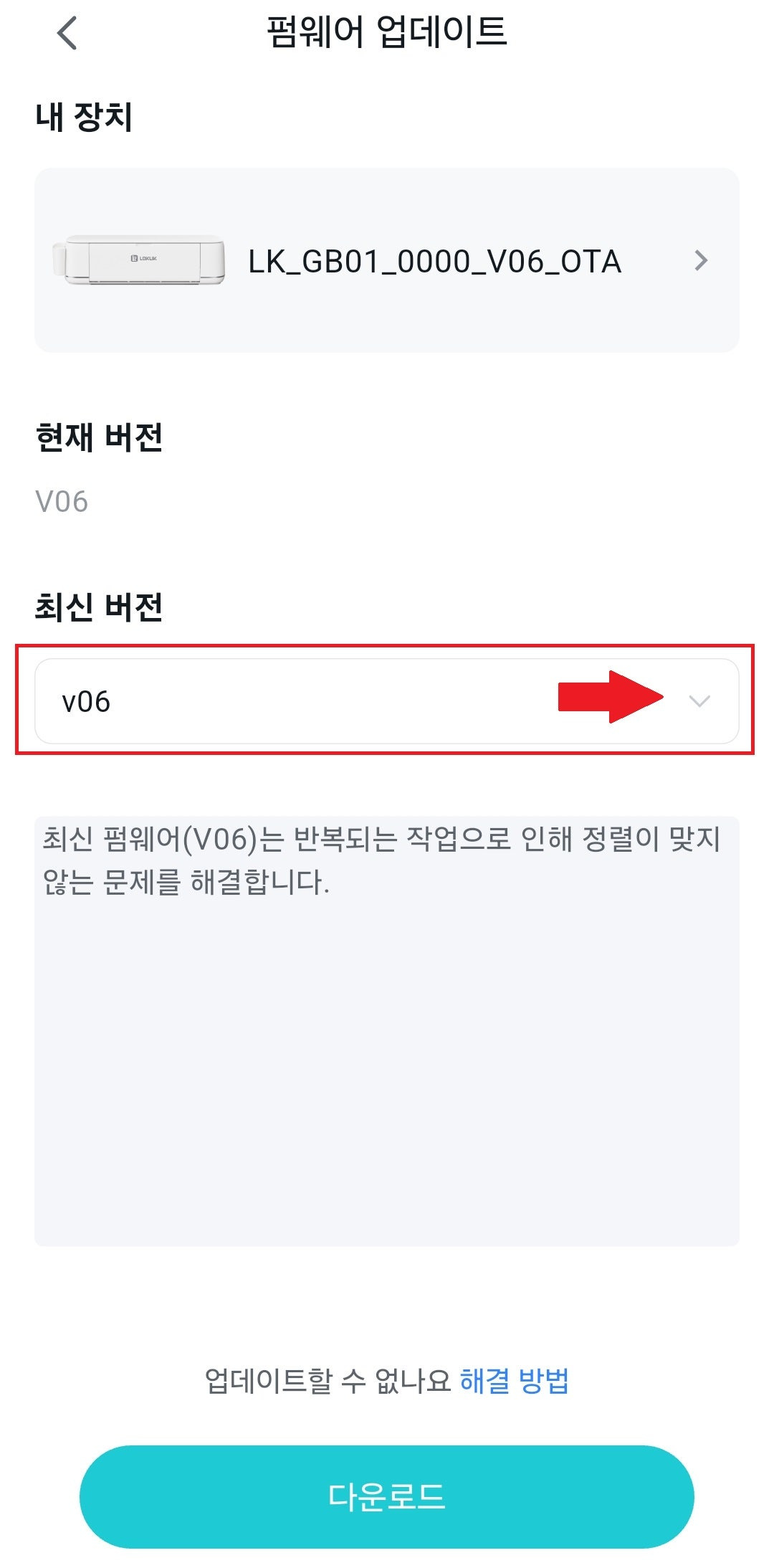 ⑧ "최신 버전" 항목에서 펌웨어 최신 버전을 선택한 다음 펌웨어 업데이트가 완료될 떄까지 기다려 주세요.