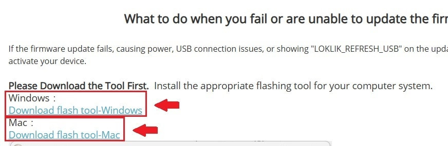 실패하거나 불가능한 경우 플래싱 도구를 이용하여 펌웨어 업데이트를 하실 수 있습니다.