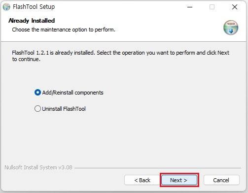⑤ 다운 받은 "플래시 툴" 설치 마법사를 열어 설치를 진행하여 줍니다.