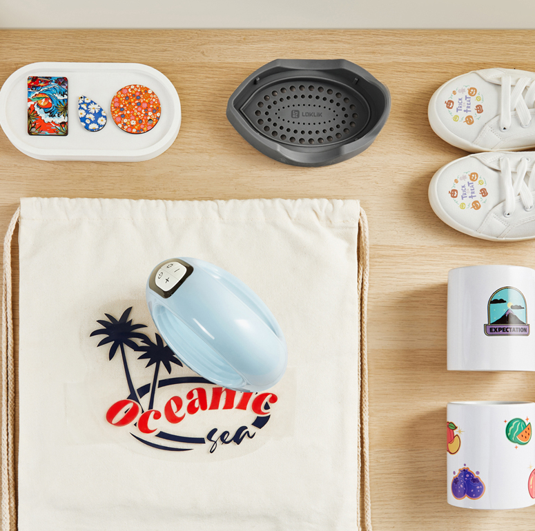 머그컵, 신발, 모자 인형 등 모서리가 닿기 어려운 곳에 편하게 전사 작업을 할 수 있습니다.